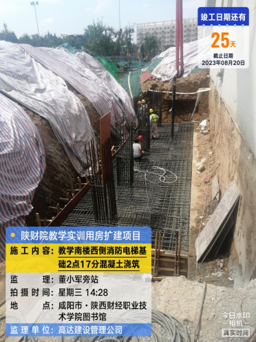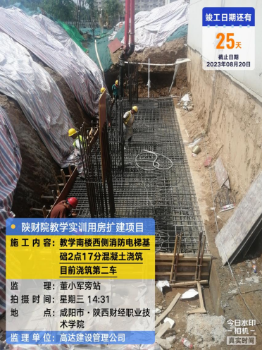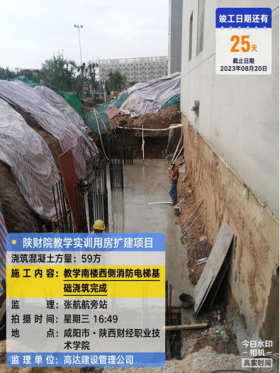 2023年7月26日下午,教学实训用房扩建项目南楼电梯基础混凝土浇筑顺利完成。