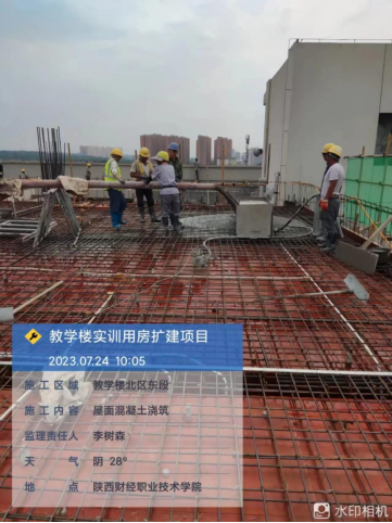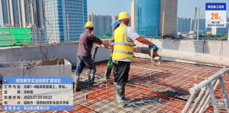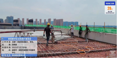 2023年7月23日至7月24日下午,教学实训用房扩建项目八层北楼屋面混凝土浇筑顺利完成。