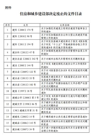 刚刚,住建部发布《关于废止部分文件的决定》,废止16个文件,其中: